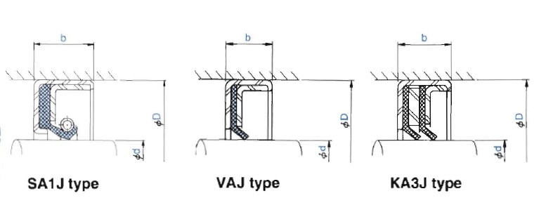 SA1J型PTFE骨架油封適用于有壓力的化學(xué)藥液用密封,VAJ型、KA3J型PTFE骨架油封適用于含粉末及粘附性強(qiáng)的流體的密封,主要用于攪拌機(jī)、鼓風(fēng)機(jī)、食品機(jī)械、壓縮機(jī)等的密封。